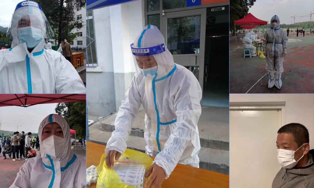 党委副书记贾鹏,带领辅导员李士荣、王宇鹏,以及十余名教师志愿者,下沉学生公寓,驻守抗疫一线,全面做好同学们的核酸检测、饮食生活、宿舍楼安全卫生等各项工作,为学生生活纾困解难、健康保驾护航。