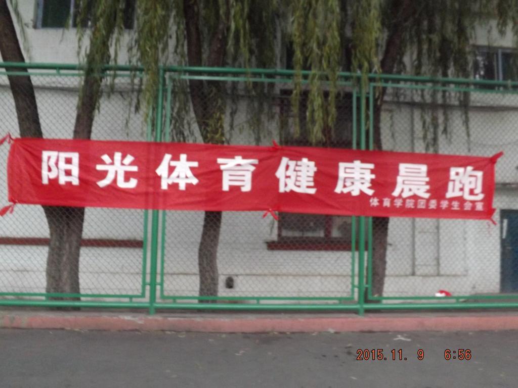 2015年11月9日在我院各系老师的亲切关怀下,由学生会负责人王老师带领学生会各部门成员悉心组织安排了“阳光体育,健康晨跑”早操活动。目的是为鼓励大一新生以崭新的面貌开启大学生活。