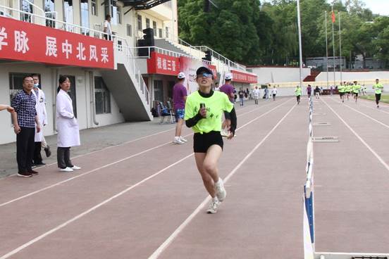 校园内道路上到处都是参赛者矫健的身影,他们有冲锋在前的学生竞速者,有不甘落后的教职工跑者,他们锐意进取,勇往直前,每个人都向着终点奋力奔跑。