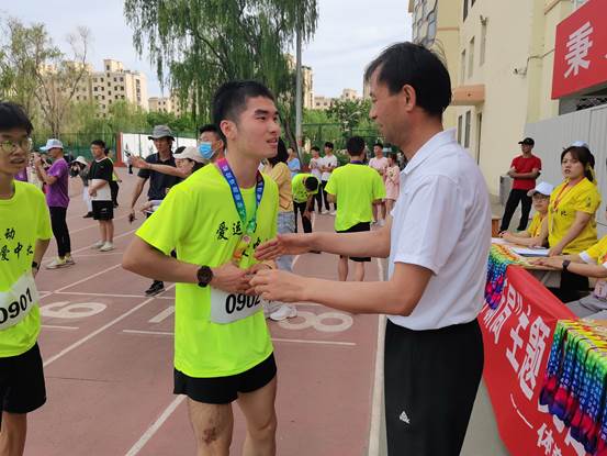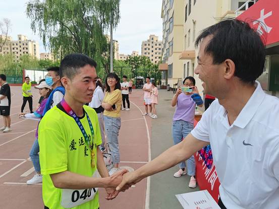 教务处副处长马东旭共同为比赛鸣枪发令,紧张而又激烈的校园马拉松赛正式开跑。