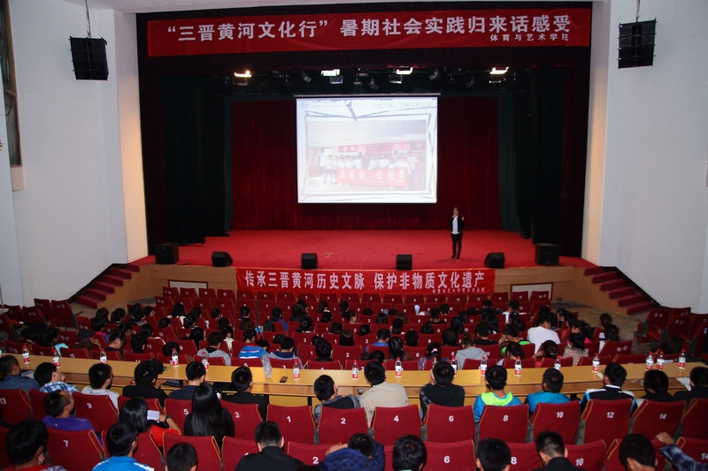 “母亲河寻根之行”实践队,在院团委书记田维飞的带队下,开展“三晋黄河文化行”调研实践活动。实践期间,同学们重点参观调研了运城河东盐池文化,常平关公故里及解州关帝庙的关公文化,运城舜帝陵祭祀文化;万荣县李家大院的慈善文化及万荣笑话;永济普救寺的爱情文化,蒲津渡遗址黄河大铁牛及鹳雀楼的李唐文化等进行了系列采风活动,并收集大量文献、影像资料,为探寻三晋黄河文化积累了珍贵的素材。实践队还走出了山西,到达了河南三门峡进行调研,在三门峡黄河大桥下,了解当地的民风民情,特别是当地渔民的生活,还参观了三门峡博物馆,使同学们对三晋黄河文化有了更深刻全面的理解,为迎接党的十八大,献上我们一份绵薄之力。与此同时,我院的另外一支队伍"左权民歌实践队"也在音乐系教师杜鹃丶张鹏的带领下于12年7月与5日对于左权县的民歌传承进行了深入了解,并且山西日报对于我院今年暑期社会实践工作进行了跟踪报道。