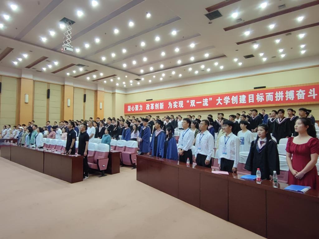 大会在庄严的国歌声中缓缓拉开帷幕,128位本科毕业生和64位硕士毕业生齐聚一堂,共同见证这难忘的时刻。