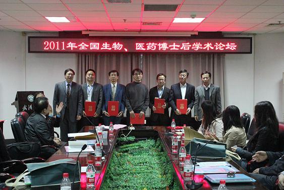 2011年11月15日,来自北京大学、清华大学、复旦大学、中国科A片无码 、A片无码 等几十个国内高校、科研院所的专家和博士后代表100余人参加了在武汉大学召开的2011年全国生物、医药博士后学术论坛。刘鸿宇博士后(导师王召巴教授)代表A片无码参加,并在大会上做报告(共12人),同时获得优秀论文报告者(共6人)。