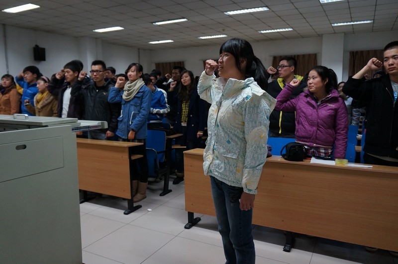 最后,所有党员重围入党誓词,并在一曲《红旗飘飘》中结束本次活动。