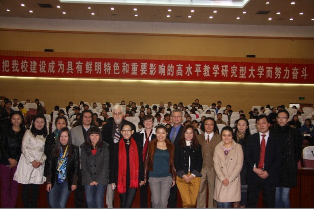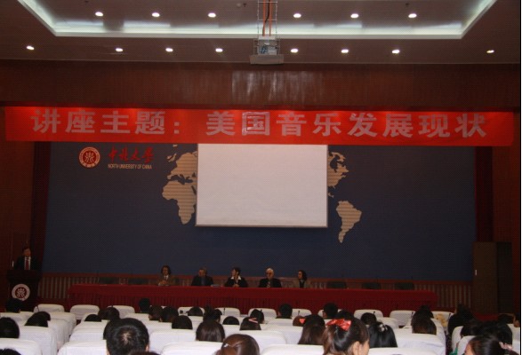 院长助理兼音乐活动部主任丁东辉教授在图书馆五层学术报告厅作了题为《美国音乐发展现状》的主题报告。主讲人丁东辉(美籍华人)是“美国迪贝–施坦尼劳斯国际音乐艺术节”执行总监,德贝肯音乐艺术中心(国际联校)总裁。迪贝艺术家表演团团长。2011年受加州政府之邀,率团为美国前总统克林顿与高创会期间做特别表演。丁教授从音乐背景学、音乐治疗学、音乐管理学以及当今美国对新型人才、新型学者的要求做了精彩的讲解。下午丁教授与音乐系教师进行了座谈,针对目前美国钢琴发展的前沿动态,例如钢琴反弹指法的训练、钢琴音乐心理学以及神经系统在音乐当中的运用和作用进行了探讨。丁教授带来的国际音乐前沿动态使所有教师耳目一新。