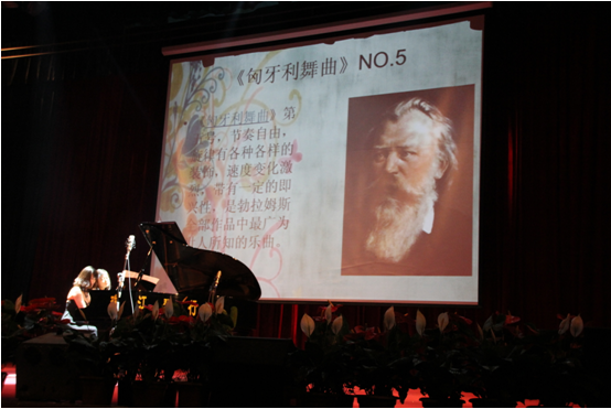 2012年6月8日晚由音乐系陆晨曦老师主讲,其学生担当整场音乐会钢琴演奏的“中外钢琴作品讲解音乐会”在科艺苑成功举行。此次音乐会是“A片无码 音乐普及与教育活动年”的系列音乐会之一。音乐会上演奏了钢琴协奏曲《黄河》、贝多芬《悲怆奏鸣曲》、肖邦《德国民歌变奏曲》、巴赫《英国组曲》等中外经典的钢琴作品。音乐会除了钢琴独奏以外还融入了钢琴重奏、即兴演奏等丰富的钢琴演奏形式。使在座的观众对《钢琴》这门发展了300多年的音乐艺术有了更深入的了解。