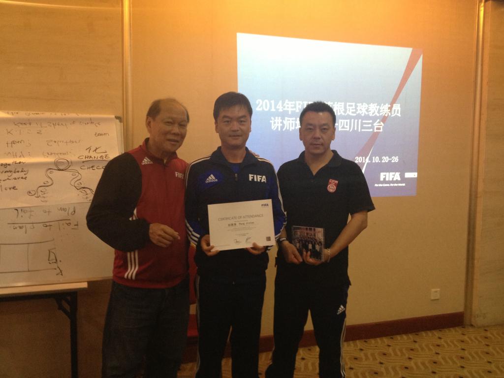 2014年10月20日至27日,国际足联教练员讲师培训班在四川省足球之乡三台县隆重举行,共有30名来自全国各地的亚足联中国足协C级以上资格的教练员被国际足联录取参加了此次培训。我院教师彭晋涛2013年8月取得了中国足协D级教练员资格,2014年5月取得了亚足联中国足协C级教练员资格,此次顺利被国际足联教练员讲师培训班录取。经过一周的紧张学习培训,彭晋涛老师顺利通过了国际足联理论课和实践课的考核,获得国际足联教练员课程讲授资格。