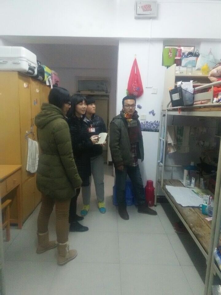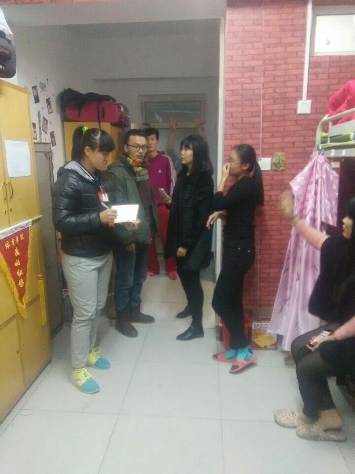 十二月三日晚我院学生会副主席王彦,办公室主任孙钰涵,生活部部长郭玺,文艺部部长刘旭东,实践部部长张玉琴对我院大一的宿舍文化大赛进行了初赛评选,经过各位部长副主席的评分,选定了六个宿舍进入决赛,宿舍号分别是:6# 340、321、336、335、10# 433、430、